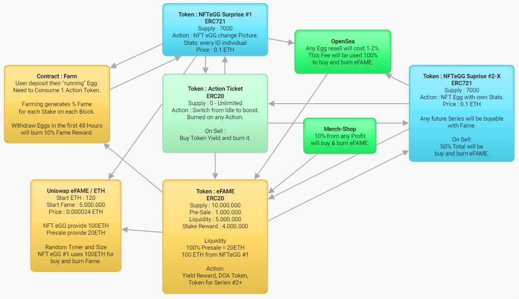 eFAME Tokens are used as Reward Tokens for any NFT Surprise series and in general are used as utility tokens for voting, rewards and other purposes, some of them still in development.